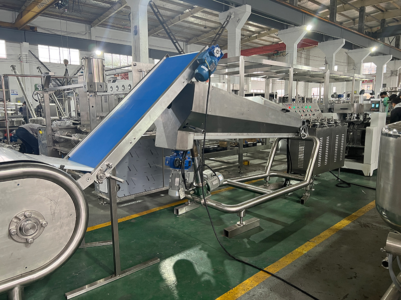 Les lignes de production de bonbons sont équipées de systèmes clés tels qu'un système de cuisson continue, une table de refroidissement, un lot de rouleau (avec un contrôle de la température), un calibreur de cordes, une machine de formage à grande vitesse, un tunnel de refroidissement et une machine d'emballage entièrement automatique. Ces systèmes couvrent l'ensemble du processus, depuis la cuisson du sirop, le formage, le refroidissement et le façonnage jusqu'à l'emballage du produit fini.