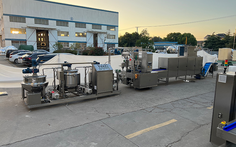 Nous avons fourni une solution clé en main complete pour la production de gummies, comprenant un système de manutention des matières premières, un système de mélange des arômes et colorants, un système de dépôt, un système de refroidissement et de démoulage, un système de séchage, un système d’enrobage au sucre, un système d’emballage et un système de nettoyage CIP.
